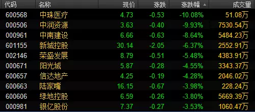 截至发稿,今日地产板块跌幅居前个股
