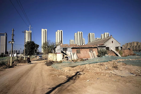 2017年10月30日,菏泽城区,耿庄棚改区工地与新建起的楼盘。(图片来源:视觉中国)
