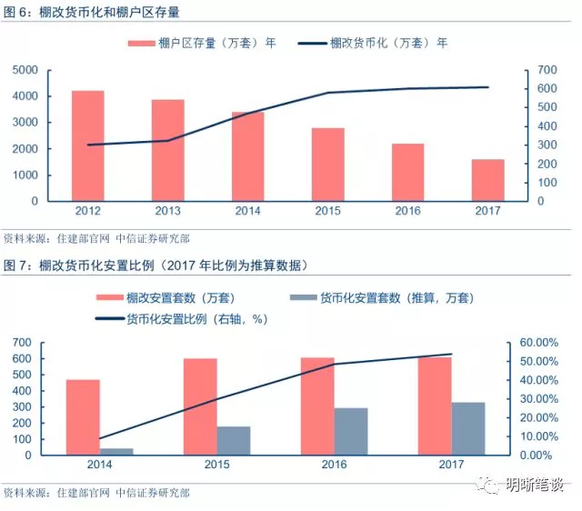 2017年6月住建部等《关于加强近期住房及用地供应管理和调控有关工作的通知》中明确指出,在商品住房库存量大、市场房源充足的三四线城市,棚户区改造要以货币化安置为主,避免重复建设。