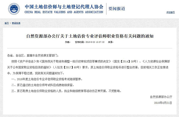 一、2018年度土地估价专业评估师职业资格考试继续暂停。