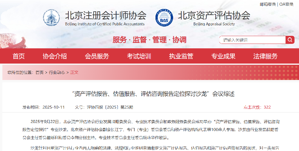 北京市评协近日组织了相关行业专家与大佬举办了专业沙龙,主要是对资产评估报告、资产评估咨询报告、估值报告的现状,三类报告在法律地位、法律责任方面的差异展开了深入讨···